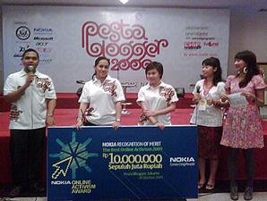 JAKARTA, KOMPAS.com – Bersamaan dengan digelarnya Pesta Blogger 2009, Sabtu (24/10), PT Nokia Indonesia memberikan penghargaan kepada blogger yang menggunakan sarana online untuk aktivitas peduli sosial.