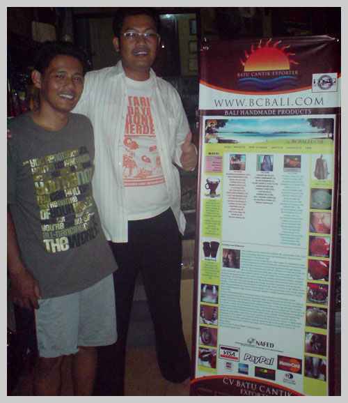 “Kita memang agak tertinggal dengan perkembangan bisnis internet, tapi saya tidak mau kalah dengan wong bule yang telah banyak berbisnis online di Bali “, ucapnya. CV. Batu Cantik pada akhirnya aktif mengikuti eksebisi/pameran kerajinan tingkat nasional bahkan bersiap-siap akan safari mengikuti eksebisi internasional di manca negara.